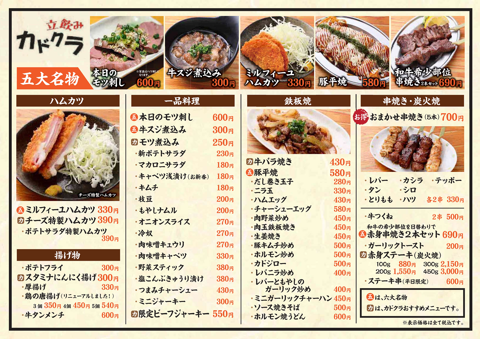 立飲みカドクラ メニュー ホーム>店舗案内> 立飲みカドクラ お気軽に一杯いかがですか? お料理にもこだわった今までにない立飲み店です。 ▶ 【平日】11:00-22:00(LO 21:30)【金・土・祝日前】11:00-23:00(LO 22:30) ▶ 無料Wi-Fi完備(NTT光ステーション) ▶ 交通系IC、電子マネー、QRコード 、クレジット決済可 03-3832-5335 東京都台東区上野6-13-1 フォーラム味ビル1F ネット予約 最新情報 メニュー ドリンク アクセス